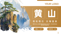 黄色系黄山:奇松怪石云海温泉的山水画PPT模板
