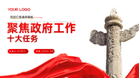 红色党政风聚焦政府工作十大任务PPT模板